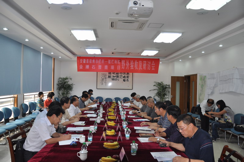 2011年5月20日至21日,“安徽省宿州市栏杆—褚栏地区金刚石普查项目野外验收及研讨会”在我院召开,省国土资源厅副厅长项怀顺、地勘处处长夏炎、省地调中心主任李建设、国土资源厅专家盛中烈、南京大学倪培教授、山东省七队、辽宁省六队等16位领导、专家莅临我院指导。