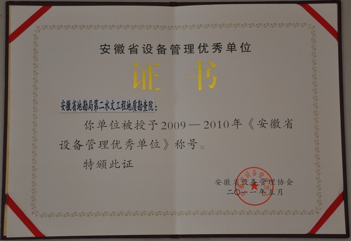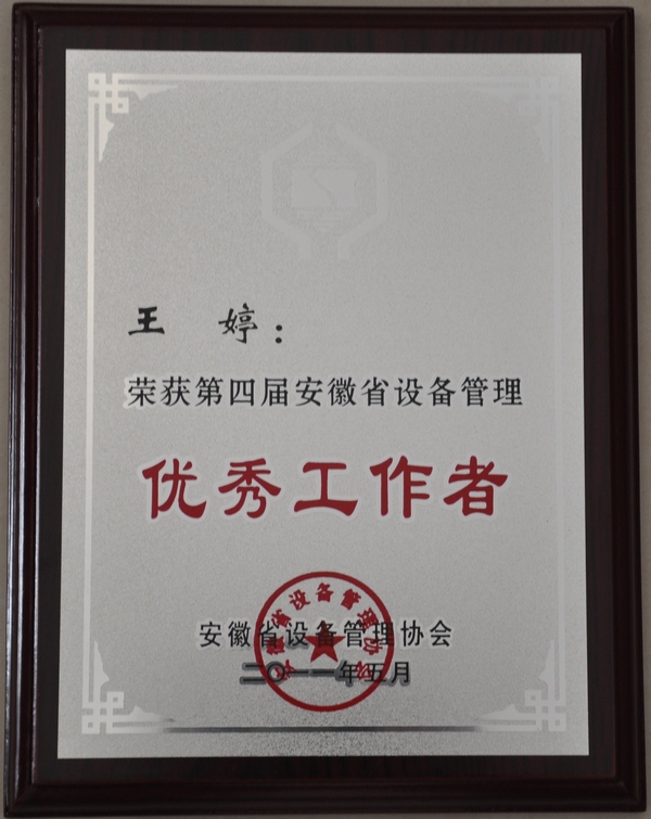 11月11日在合肥市召开的全省设备管理工作暨表彰会上,我院被安徽省设备管理协会授予“2009—2010年安徽省设备管理优秀单位”、王婷同志被授予“安徽省第四届设备管理优秀工作者”荣誉称号。