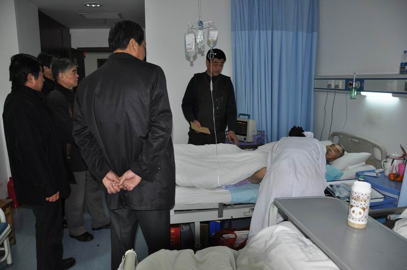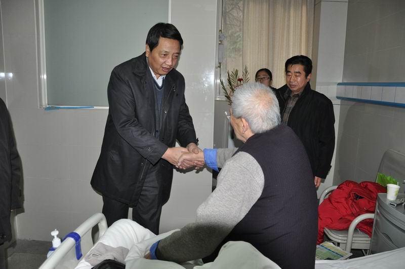 元月13日,省地矿局副局长袁明、局离退处副处长汪荣峰、局投资公司副总经理侯其标一行在院长马作明、党委书记张国平和副院长江汪杰的陪同下,先后在家中和医院慰问了邓富全、殷志诚和九十余岁高龄的王惠香等离退休老同志。袁明副局长与他们亲切交谈,祝他们健康长寿,并为他们送去新年的祝福和局党委的亲切关怀。