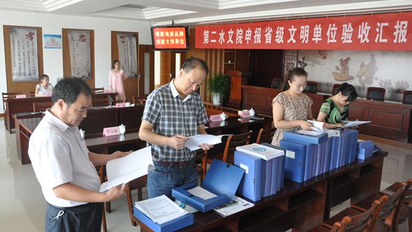 文明办领导听取了党委书记闻新权对近年来我院文明创建工作的汇报,详细查阅了创建资料,观看了二水专题宣传片,对我院文明创建工作取得的成绩给予充分肯定,认为我院创建资料齐全、内容翔实,文明礼仪、遵德守礼提示牌温馨、醒目,宣传到位,中国梦系列宣传广泛、深入,软件实力明显提升。同时对创建资料提出了一些宝贵的意见和建议。