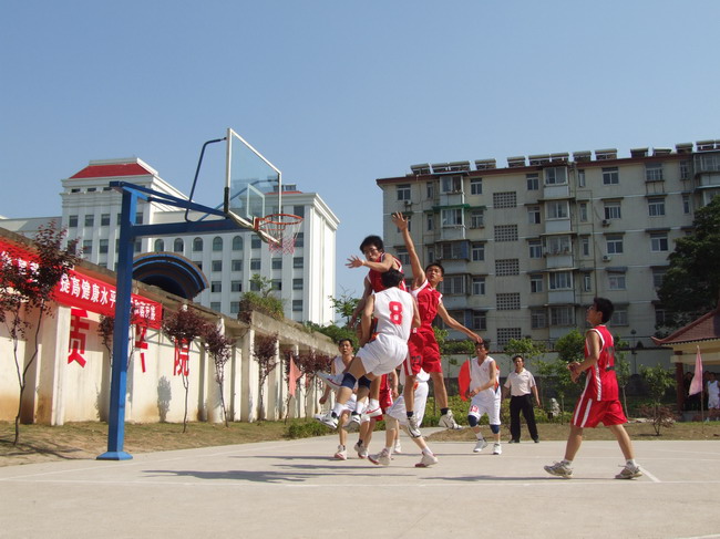 (何明远摄于局迎国庆职工篮球友谊赛;李山鹰配文)