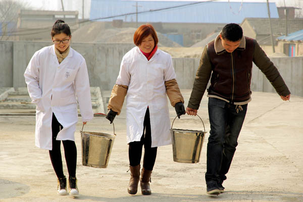 我们,这一群可爱的女地质员,和一群男人们比肩。一起,喊着小口号,把一块块石头砸开,一锹一锹地挖土。脱掉高跟鞋,挽起长发,穿上白色的大褂,系上牛仔布的围裙,奔走于尘土黄沙间,分解掉一个又一个小土堆,离目标越来越近!