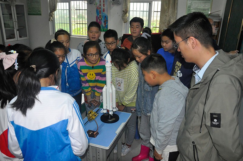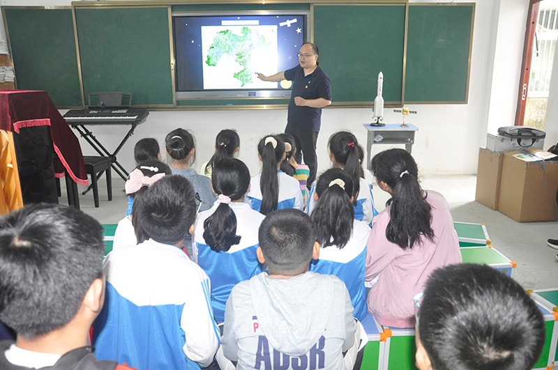活动现场,同学们对火箭和卫星模型表现出浓厚的兴趣,院空间信息与卫星应用中心副主任桂翔为同学们介绍了高分、北斗系列卫星的组成及其在我国各个领域的应用情况。该校校长周明明对我们的到来表示热烈的欢迎,并就我院对乡村教育工作的大力支持表示感谢。双方围绕文明校园共建、防灾减灾救灾、高分北斗遥感知识科普等方面进行了充分交流,达成了共建意向。